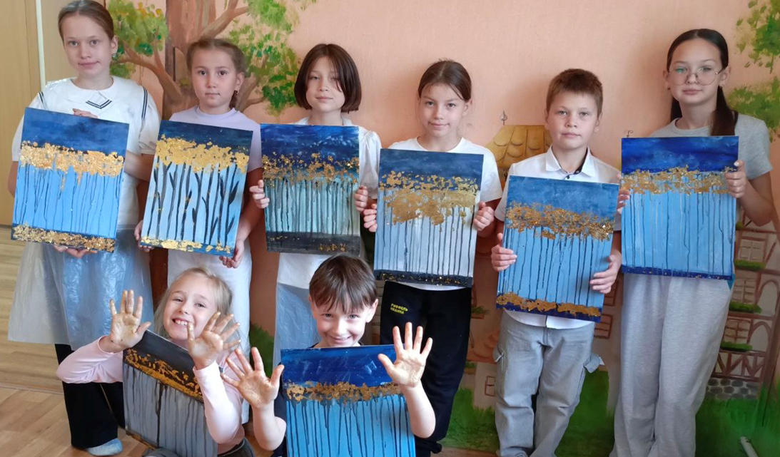С руководителем Клубного Формирования в направлении изобразительного искусства Халиуллиной Лилией Рафаэловной читатели нарисовали осень в технике золочения, которая на сегодняшний день является современной техникой рисования в живописи. Ребята попробовали передать всю глубину восприятия природы автора, используя технику золочения — особую живописную методику, позволяющую подчеркнуть богатую палитру цвета и света.