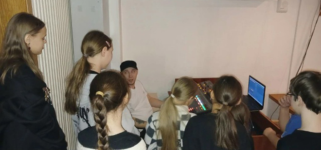 Учащиеся театрального отделения Боровской детской школы искусств «Фантазия» провели творческую встречу со звукооператором центра культуры и досуга «Родонит» Александром Охрименко.