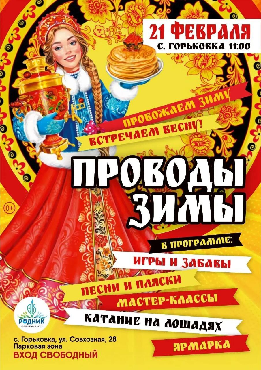 Проводы зимы назначаем на 21 февраля, шестой день Масленичной недели. Место – село Горьковка.