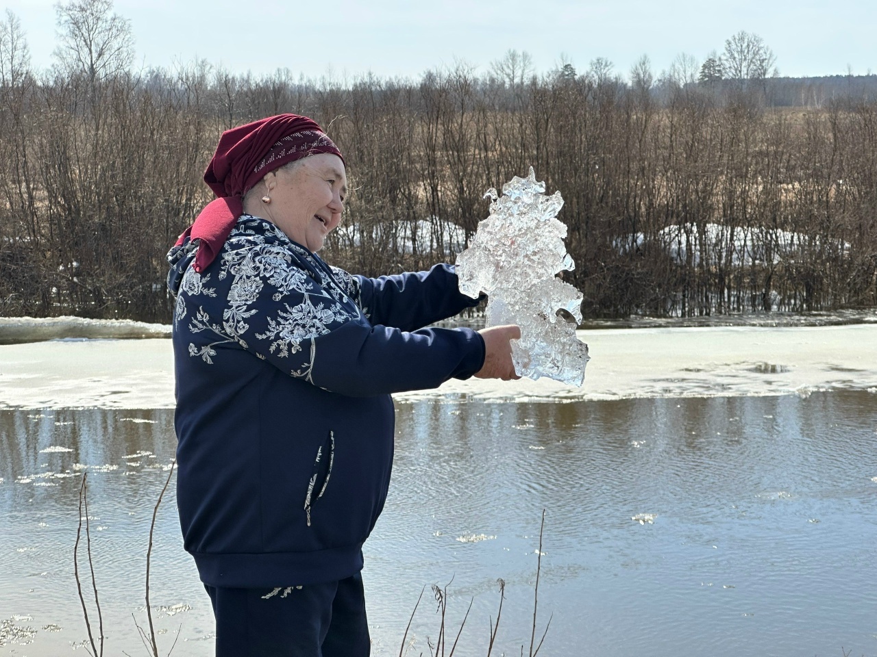 "Современные сибирские татары во время ледохода обращаются к "речным хозяевам", как к живому существу, с просьбой о здоровье для себя и близких, для домашнего скота, чтобы те не "забирали" животных. В качестве дара звонкие монеты кидали на плывущие льдины", - рассказывает руководитель клубных формирований Таския Назмутдинова.