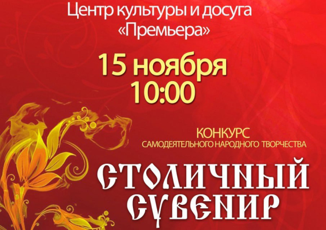 В Тюменском округе стартует конкурс самодеятельного народного творчества «Столичный сувенир». Торжественное открытие и смотр конкурсных номеров пройдет 15 ноября в 10:00 в Центре культуры и досуга «Премьера» п. Богандинский.