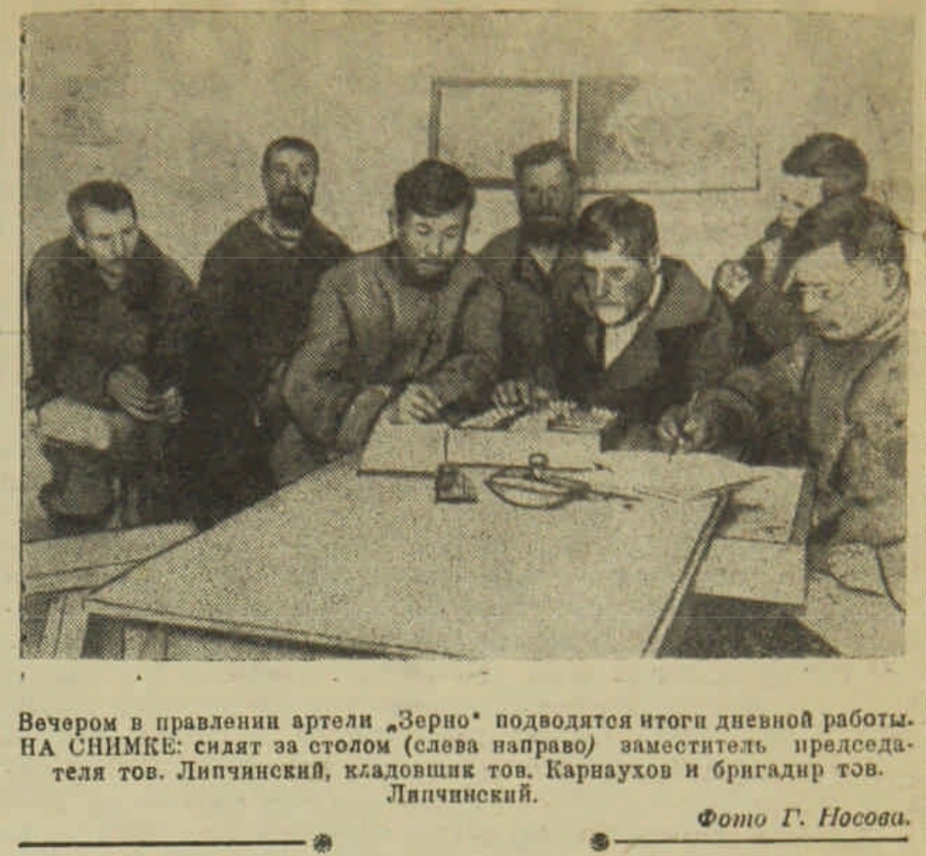 В артели имени Куйбышева Червишевского сельского совета возгласами одобрения встречено решение начислять лучшим людям, кроме трудодней, натуру – зерно.