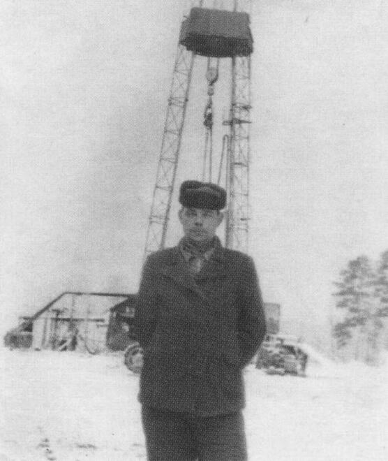 В 1950 году он вернулся на родину. "Окончив курсы бурильщиков, я получил удостоверение и отправился в Заводоуковскую буровую партию. Она тогда искала нефть на юге Тюменской области. Два месяца работал помощником бурильщика, а потом меня назначили бурильщиком в бригаду Бориса Никитича Мелик-Карамова. <...> Когда Борис Никитич ушел на пенсию, меня утвердили мастером. Началась жизнь тревожная и хлопотливая. <...> Объехали много районов, а нефти нет и нет. Ревниво охраняла свои сокровища матушка-природа. Где же они, эти богатства, как подобрать к ним ключи? И так десять лет! Десять лет бесплодных поисков! Трудных, хлопотных, суровых. Оборудование тогда было менее мощное, бурильный инструмент плохой. Бурили ротором. Турбобуров не имели. Аварии на буровых были обычным явлением.