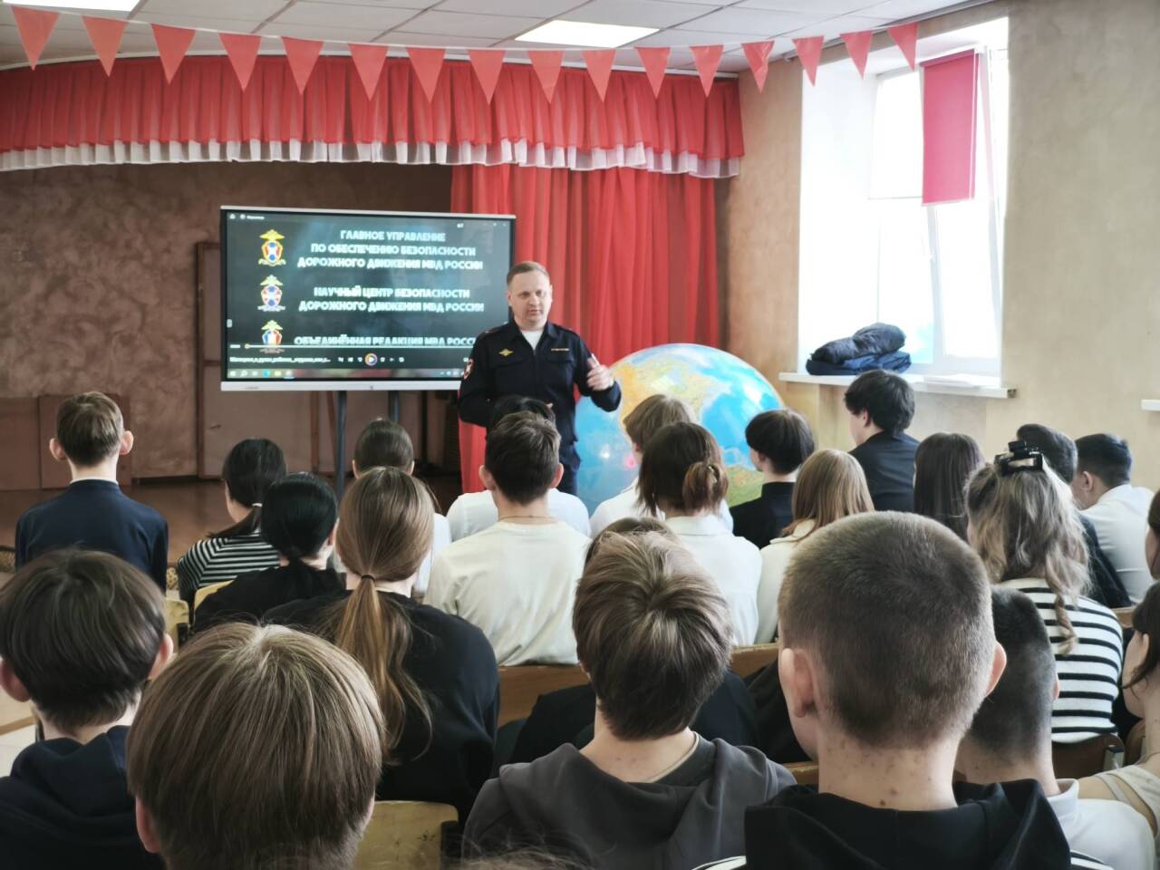 Начальник отдела Госавтоинспекции «Тюменский» Евгений Хмелев и заместитель начальника Сергей Ванюков провели уроки дорожной безопасности дорожного движения в Московской и Богандинской школах.