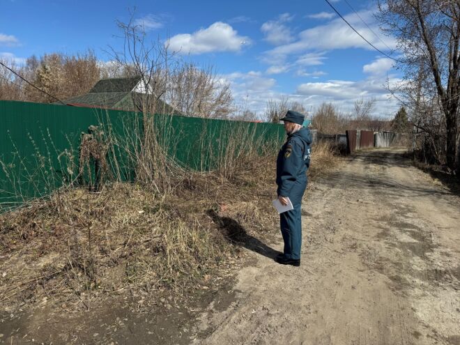 Инспекторы отдела надзорной деятельности и профилактической работы «Тюменский» продолжают комплексные рейды по выявлению заросших сухой растительностью земельных участков и очагов возможного возгорания на территории Тюменского округа.