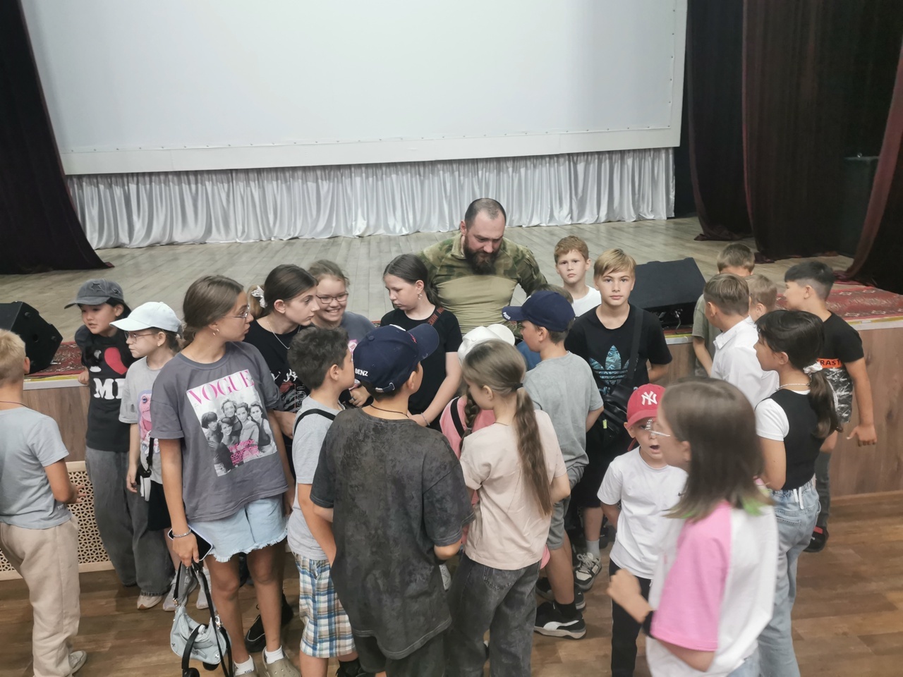 Дмитрий Дмитриевич рассказал истории о своей жизни, об участии в СВО, о наградах и призвал присутствующих любить и беречь Родину. Он подробно отвечал на все вопросы жителей Лугового.