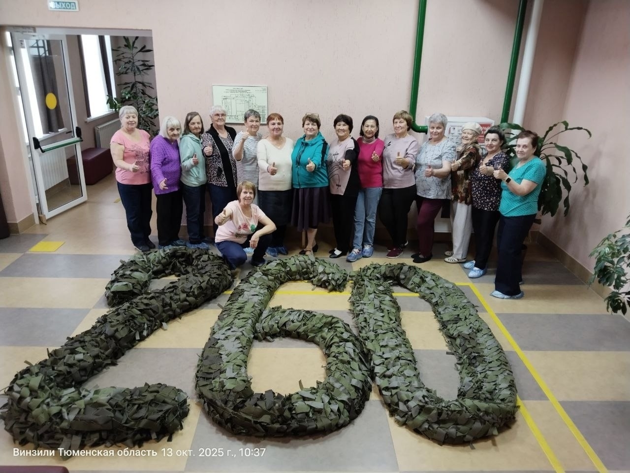 Третий год в Винзилях серебряные волонтеры плетут для бойцов СВО маскировочные сети. Начинали они это благое дело в спорткомплексе, где им помогали юные спортсмены, затем переместились в Центр культуры и досуга «Вернисаж» – там намного просторнее.