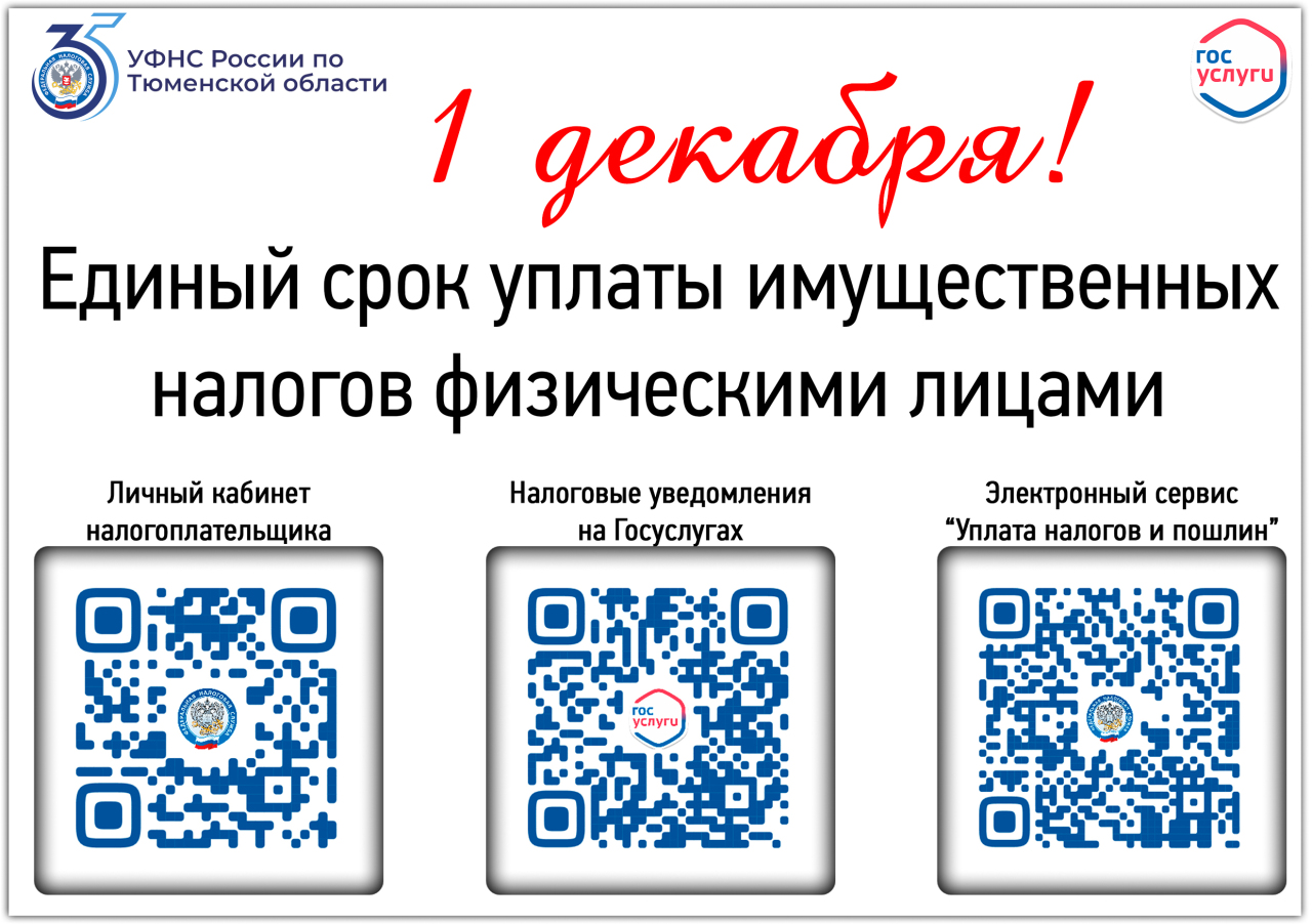 Налоговые органы Тюменской области напоминают: срок уплаты имущественных налогов за 2024 год не позднее 1 декабря 2025 года.