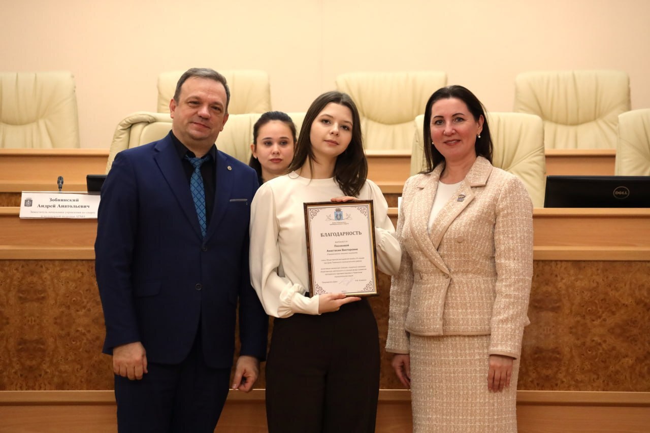 За вклад в молодёжный парламентаризм коллектив получил Благодарственное письмо областной Молодёжной палаты, за активную позицию и вклад в развитие молодёжного парламентаризма отмечены Анастасия Посохова, Александр Полещук и Алёна Стрельцова.