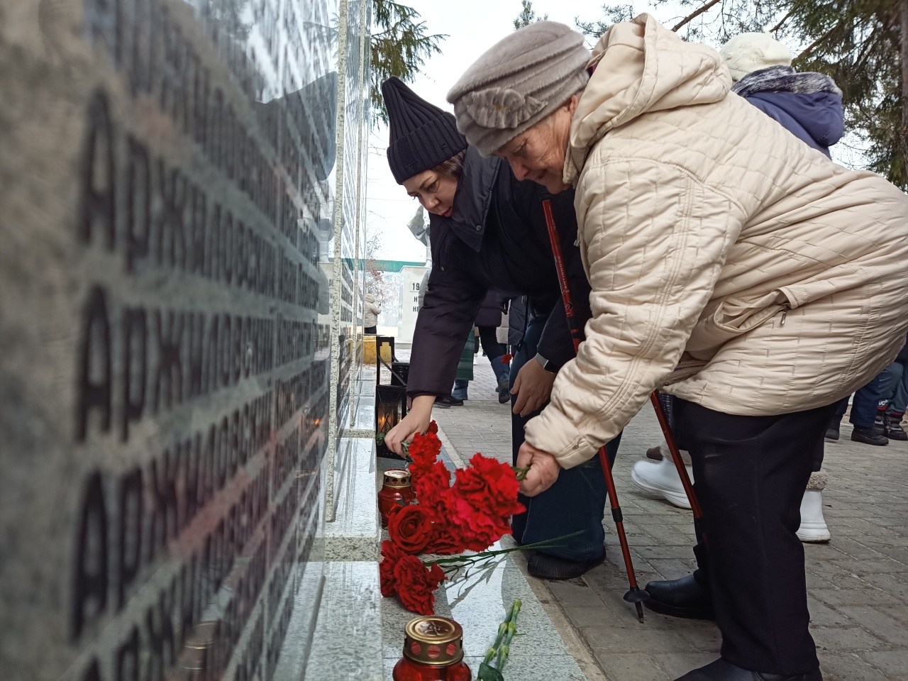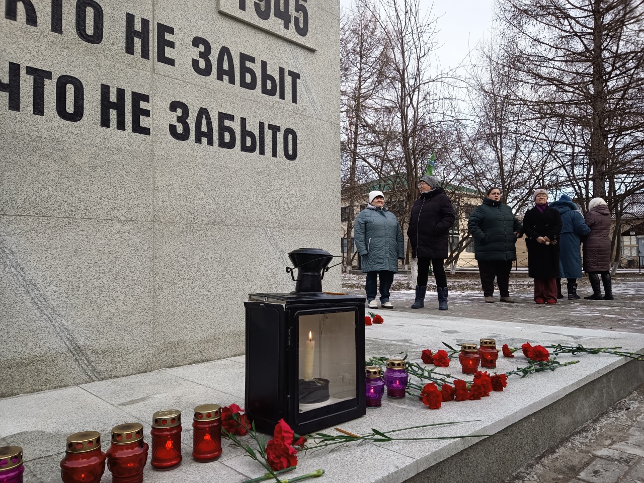 Права открыть стелы на аллее Героев удостоились коренная жительница села Тамара Кукушкина и участница научно-практической конференции "Шаг в будущее – 2025" Арианна Кутдусова. В знак преемственности традиций они вместе зажгли свечу памяти.