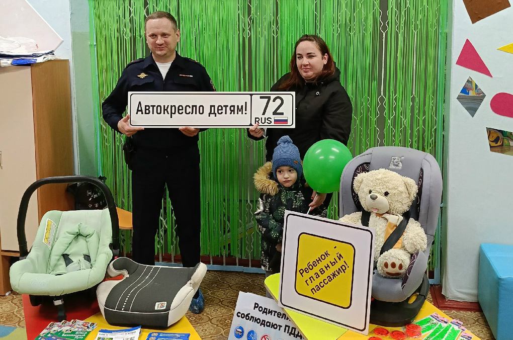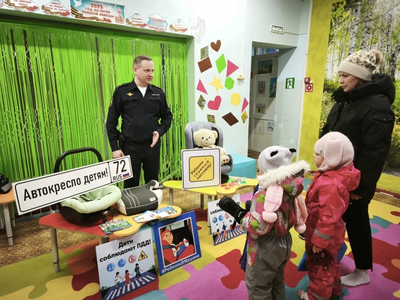 Заместитель начальника отдела Госавтоинспекции Тюменский Сергей Ванюков и инспектор по ПДД Юлия Денисова в детском саду «Сибирячок» с.Червишево организовали мобильную выставку различных видов детских удерживающих устройств.