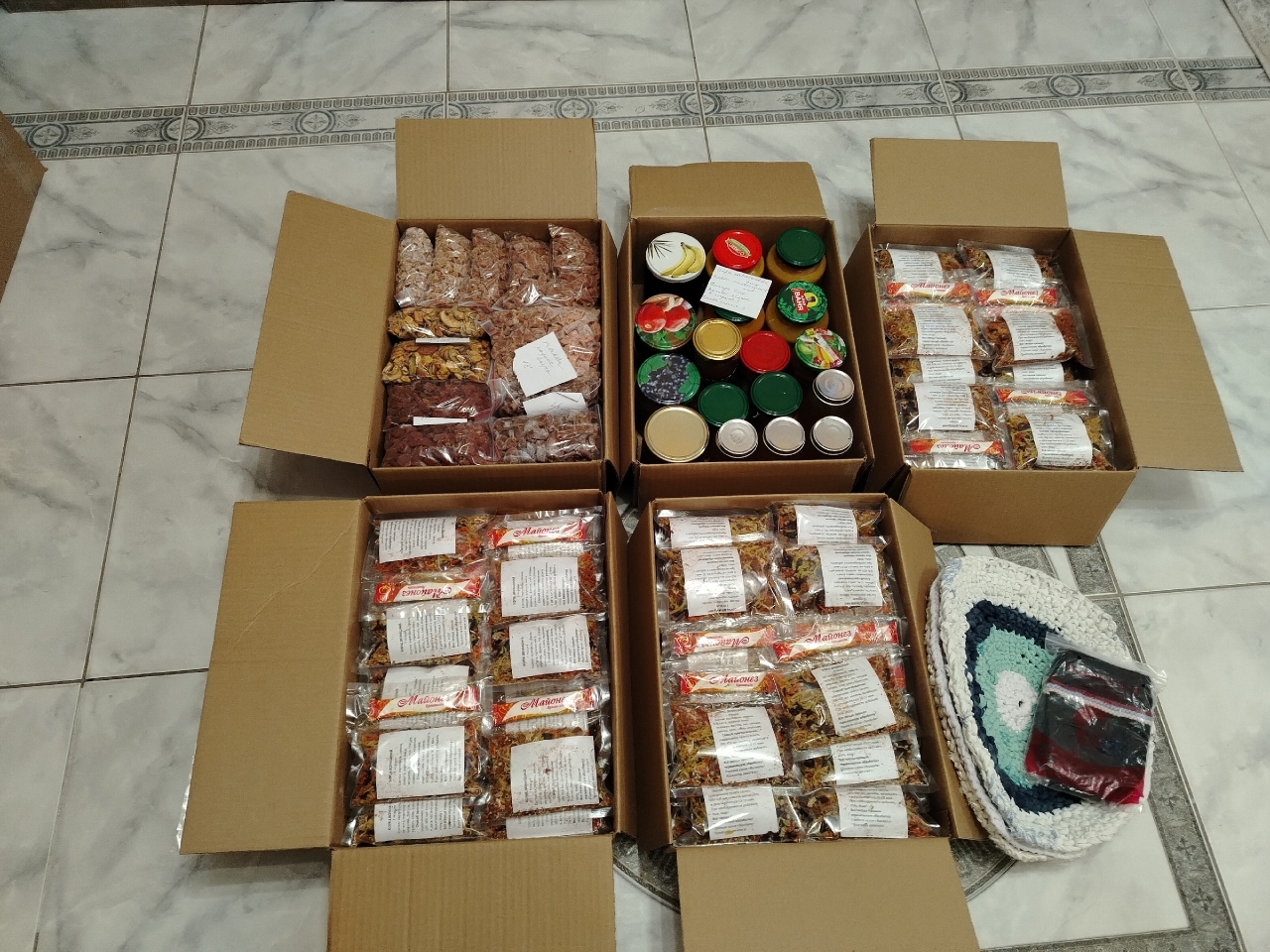 От прихожан Свято-троицкого маныстыря и жителей Тюмени были переданы три коробки мёд-варение, мёд-чай и обереги с молитвами.