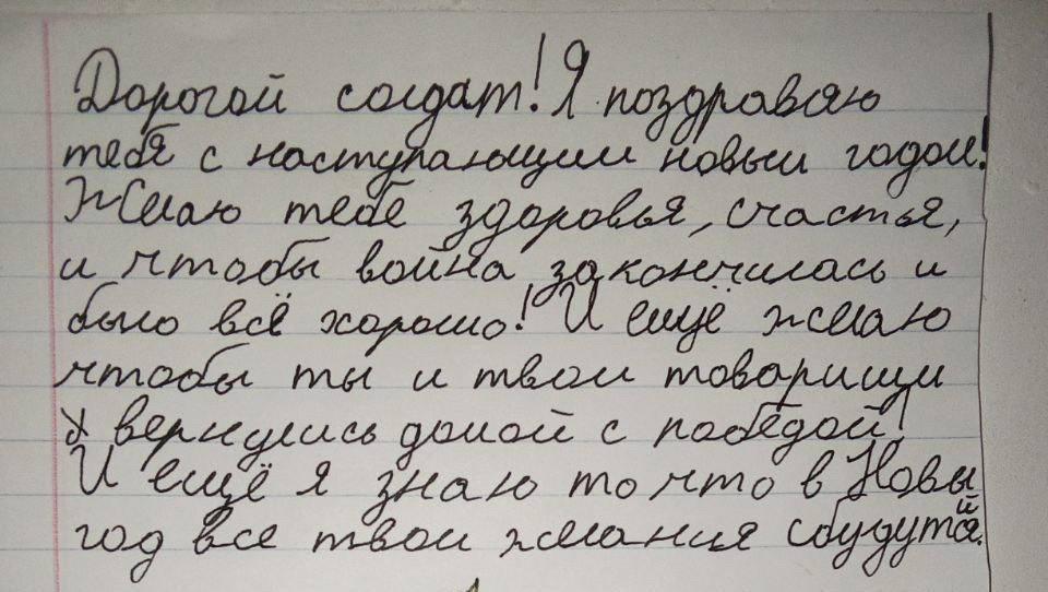 В своих письмах ребята выразили слова поддержки тем, кто сейчас находится на передовой, защищает права и свободы людей. Школьники адресовали им простые и очень тёплые, искренние слова, которые именно сейчас воинам так необходимы, и пожелания скорейшего возвращения домой.