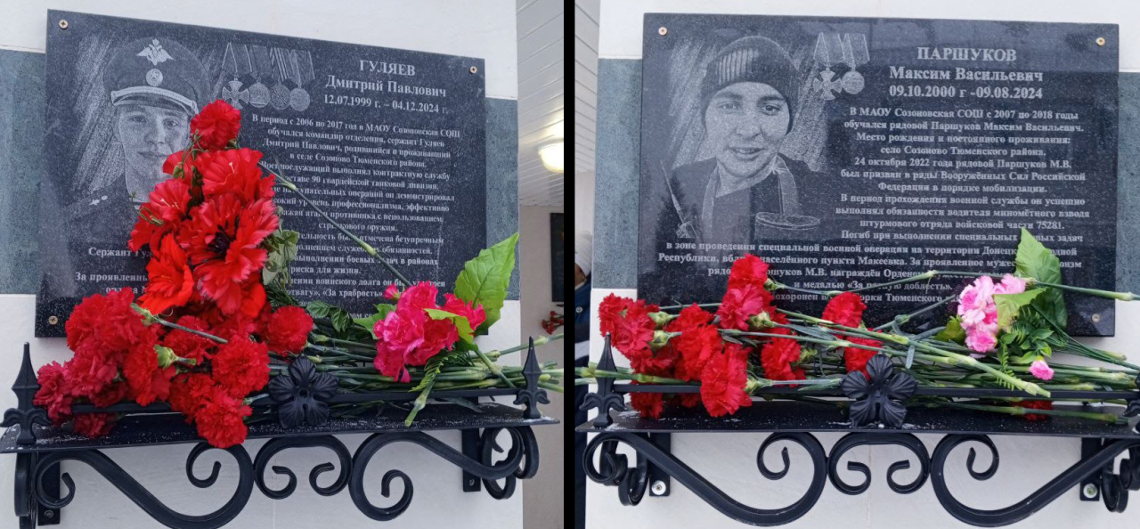 На стенах школы села Созоново появились мемориальные доски, посвященные памяти бойцов СВО Дмитрия Гуляева и Максима Паршукова.