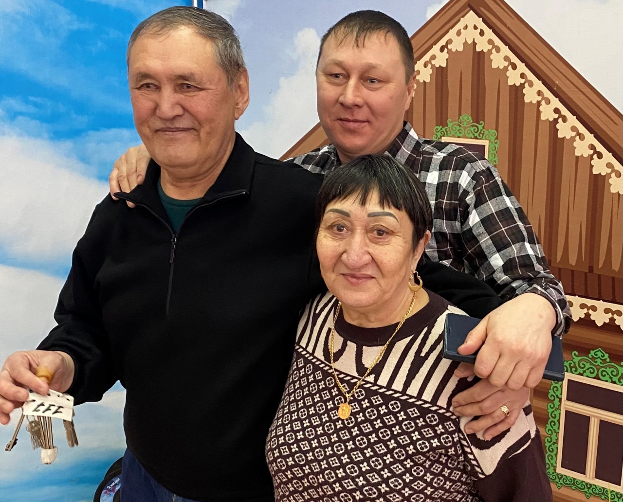 Еще одна семья новоселов - Жибек и Сабыржан Мусины - переехали в Ембаево из Казахстана в 1997 году. Устроились на ферму, он работал скотником, она – дояркой. Им дали две комнаты в общежитии. Когда-то они и этому жилью были рады. Но последнее время в доме были перебои с отоплением, комнаты приходилось отапливать тенами. Хотелось поскорей перебраться в новую, теплую квартиру. Она у них будет на 13 этаже, просторная – 56 кв. метров, светлая. Они уже начали подбирать мебель, которой обставят комнаты, присматривать шторы, которые повесят на окна. Им хочется, чтобы в доме были красота и уют, чтобы можно было приглашать в гости всю их большую семью - у Жибек и Сабыржан трое детей (сын и две дочери), пять внуков и один правнук. Когда все соберутся, Жибек Курмановна обязательно приготовит бешбармак и испечет пироги: сын Николай, который служил на флоте, больше любит с рыбной начинкой, а дочери – с клюквой и яблоками.