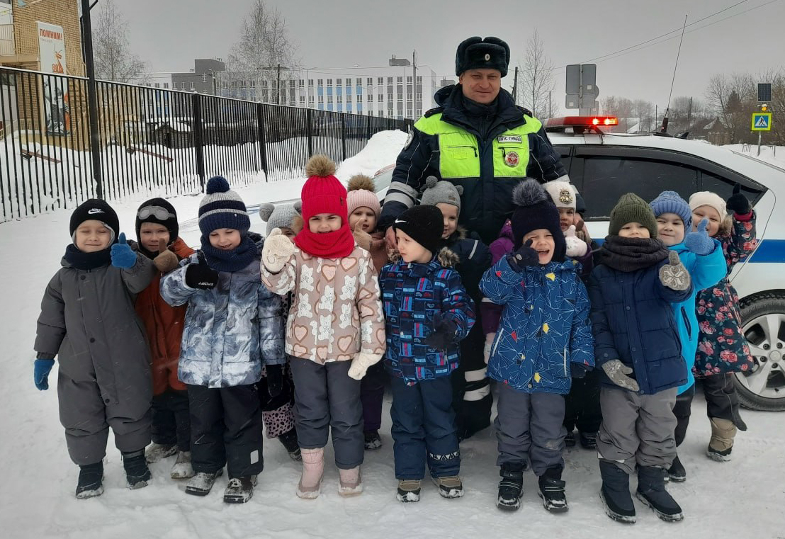 Юные пешеходы узнали, как правильно переходить улицу и почему нельзя играть рядом с проезжей частью. Инспекторы напомнили, что зимой машинам требуется больше времени для остановки.