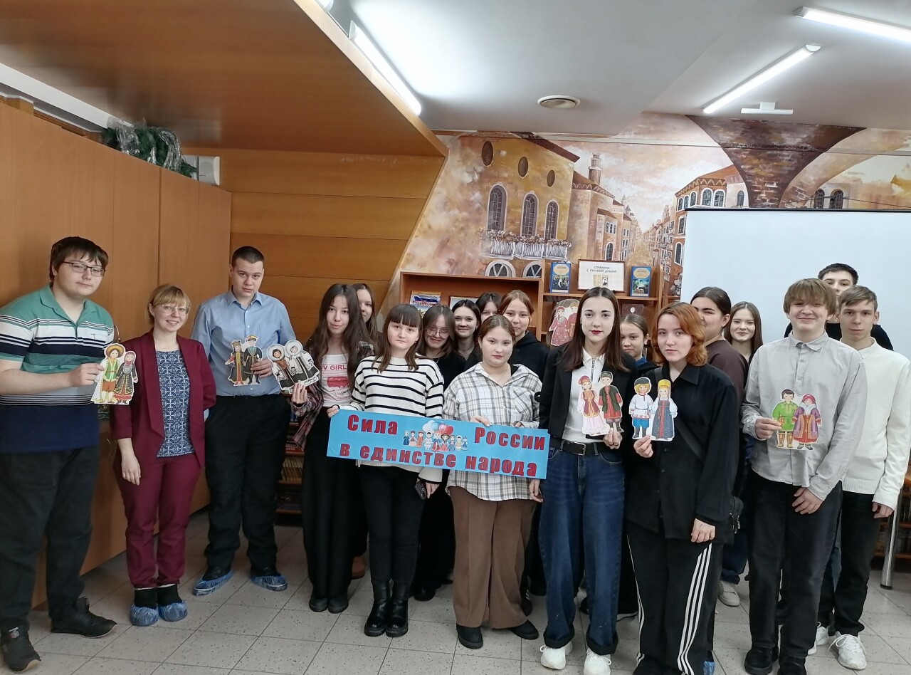 3 марта для молодёжи прошёл информационный час "Народов много – страна одна". Библиотекарь сначала представила статистические данные об этническом составе населения России, рассказала о малочисленных народах, проживающих в нашей стране. Культура каждого из них уникальна, она отличается языком, обычаями, обрядами, костюмами и кухней, а еще – фольклором. Ведь у каждой нации есть свои песни, сказки, легенды, поговорки, загадки и другое. Старшеклассники ответили на вопросы викторины, в которой они слышали пословицы разных народов, и вспоминали русские, имеющие тот же смысл. Подробнее библиотекарь рассказала о быте, обрядах, традициях ханты и манси. Основными занятиями этих народов на протяжении многих веков были охота, рыболовство и оленеводство. Ребята отгадали мансийские загадки о животных и явлениях природы. Затем они узнали информацию о культуре чувашей, о проведении их национальных праздников, о блюдах чувашской кухни и провели аналогии с русскими.
