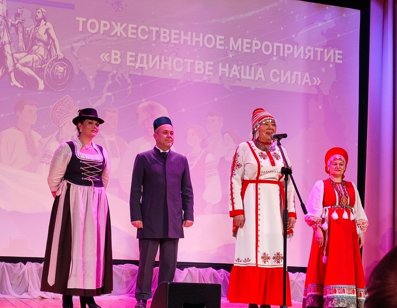 В фойе Дома культуры работала выставка творчества представителей разных национальностей из сел "столичного". На сцене выступали творческие коллективы, продемонстрировавшие, что в нашем разнообразии – наше богатство. Мы вместе – и в этом наша сила.