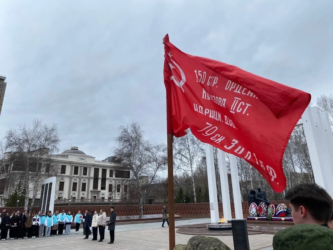 На площади Памяти в Тюмени собрались бойцы и руководители поисковых отрядов, представители органов власти и общественных объединений, школьники. Участниками торжественного митинга стали добровольны из отряда "Аэлита" Московской школы.