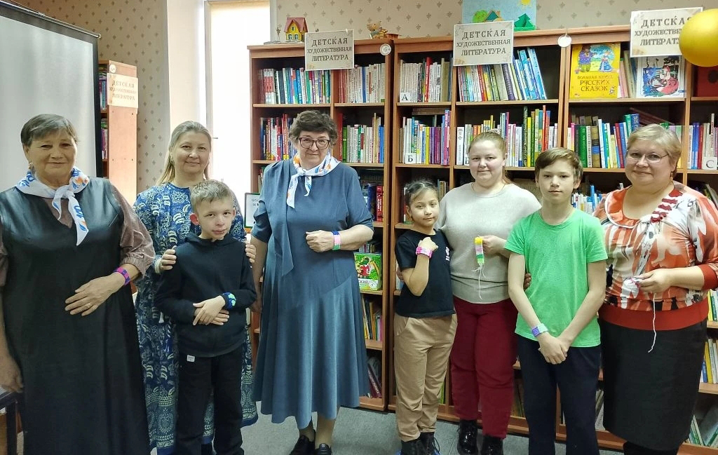 Библиотекарь Анна Бейдель провела несколько мероприятий в рамках этой акции, на одно из которых были приглашены дети с особенностью здоровья, учителя и "серебряные" волонтеры. Темой встречи стала "Магия рукодельниц: национальные костюмы и ткачество". Мастерица узорного ткачества Светлана Тверских поведала собравшимся об особенностях русского национального костюма и о других традиционных нарядах народов России.
