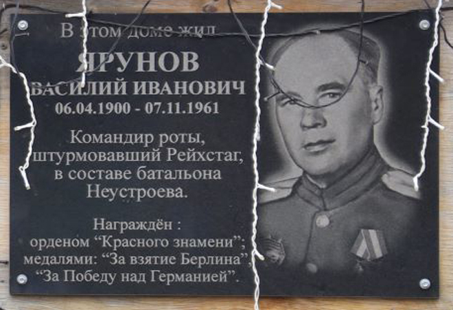 Василий Иванович Ярунов родился в Килках (село Богандинское) в многодетной семье, закончил 4 класса церковно-приходской школы. В годы Великой Отечественной войны в должности командира роты участвовал в боях на Брянском фронте. В мае 1945 года под командованием Героя Советского Союза Степана Неустроева штурмовал главный центр принятия решений нацистского режима – здание Рейхстага. Рота Василия Ярунова атаковала немцев с тыла и заставила их скрыться в подземелье. За особую храбрость, самоотверженность и мужество, проявленные при защите Отечества, Василий Ярунов награжден орденом Красного Знамени, медалями "За взятие Берлина" и "За победу над Германией".