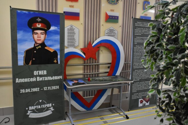 В школе села Ушаково открыли «Парту Героя» в честь выпускника Алексея Огнева. Алексей окончил школу в 2018 году, прошел срочную службу в армии и весной 2024 года отправился добровольцем в зону специальной военной операции.